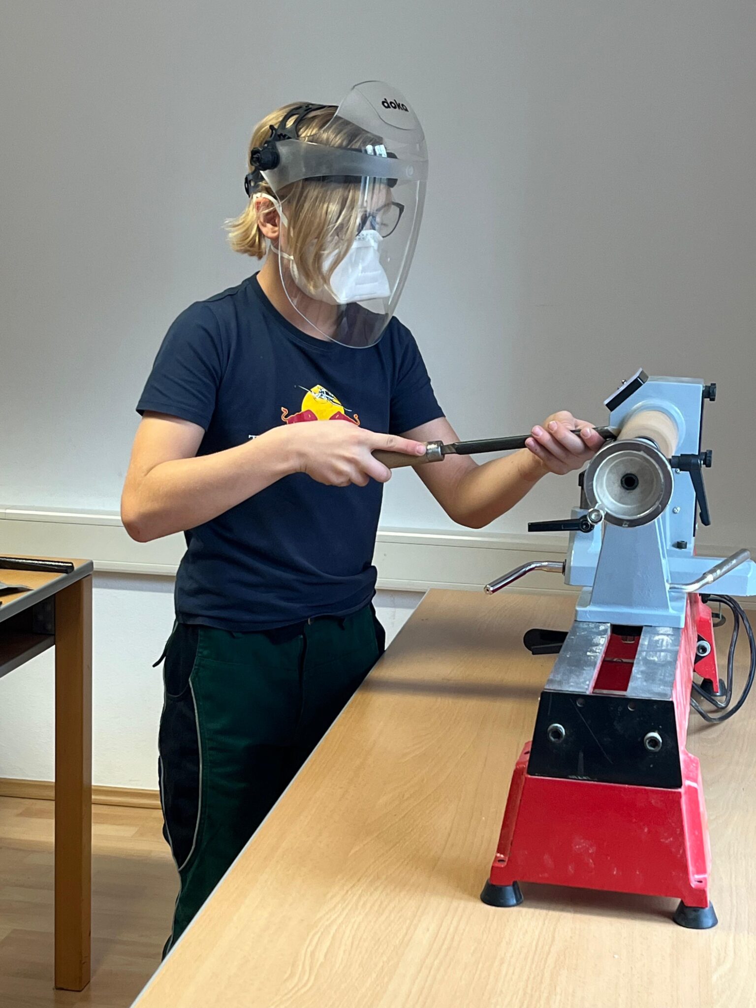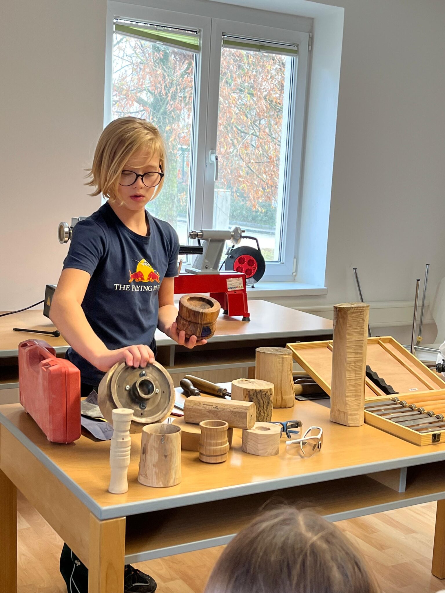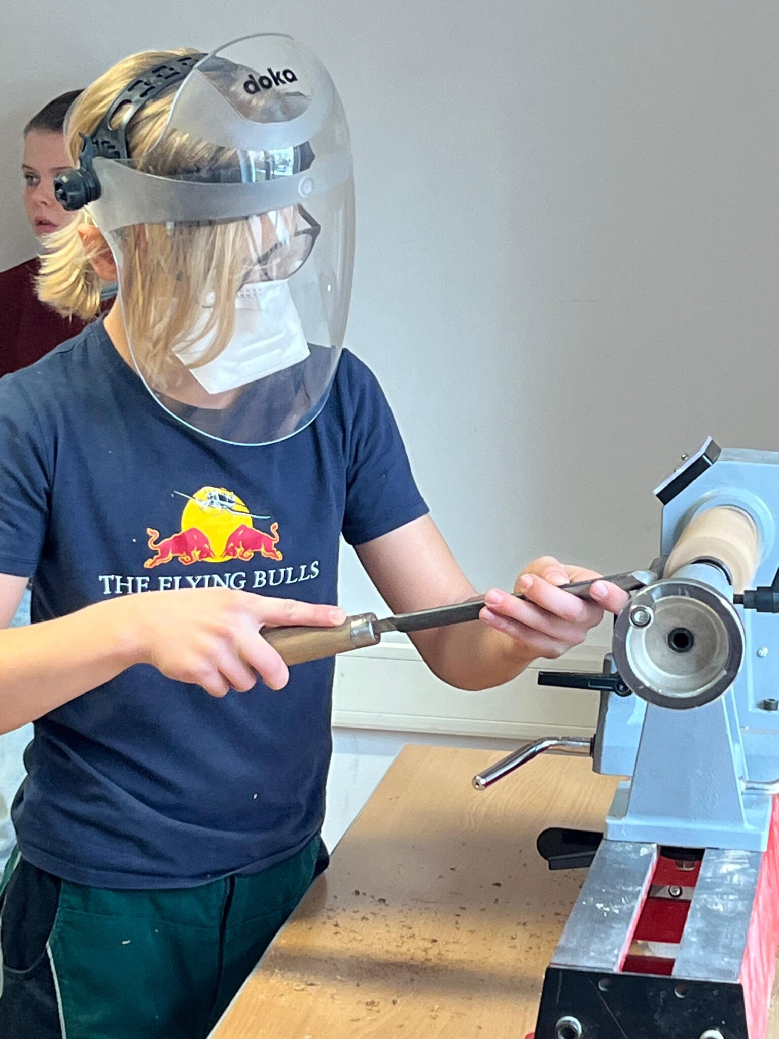Wir bekamen von ihm eine informative, spannende Einführung in das Drechseln. Nicht nur, dass er uns die Drehbank genau erklärte und das Einspannen von Holz zeigte, er erklärte uns auch verschiedene Techniken des Drechselns und die passende Anwendung entsprechender Werkzeuge. Richtig spannend für Holzliebhaber!
