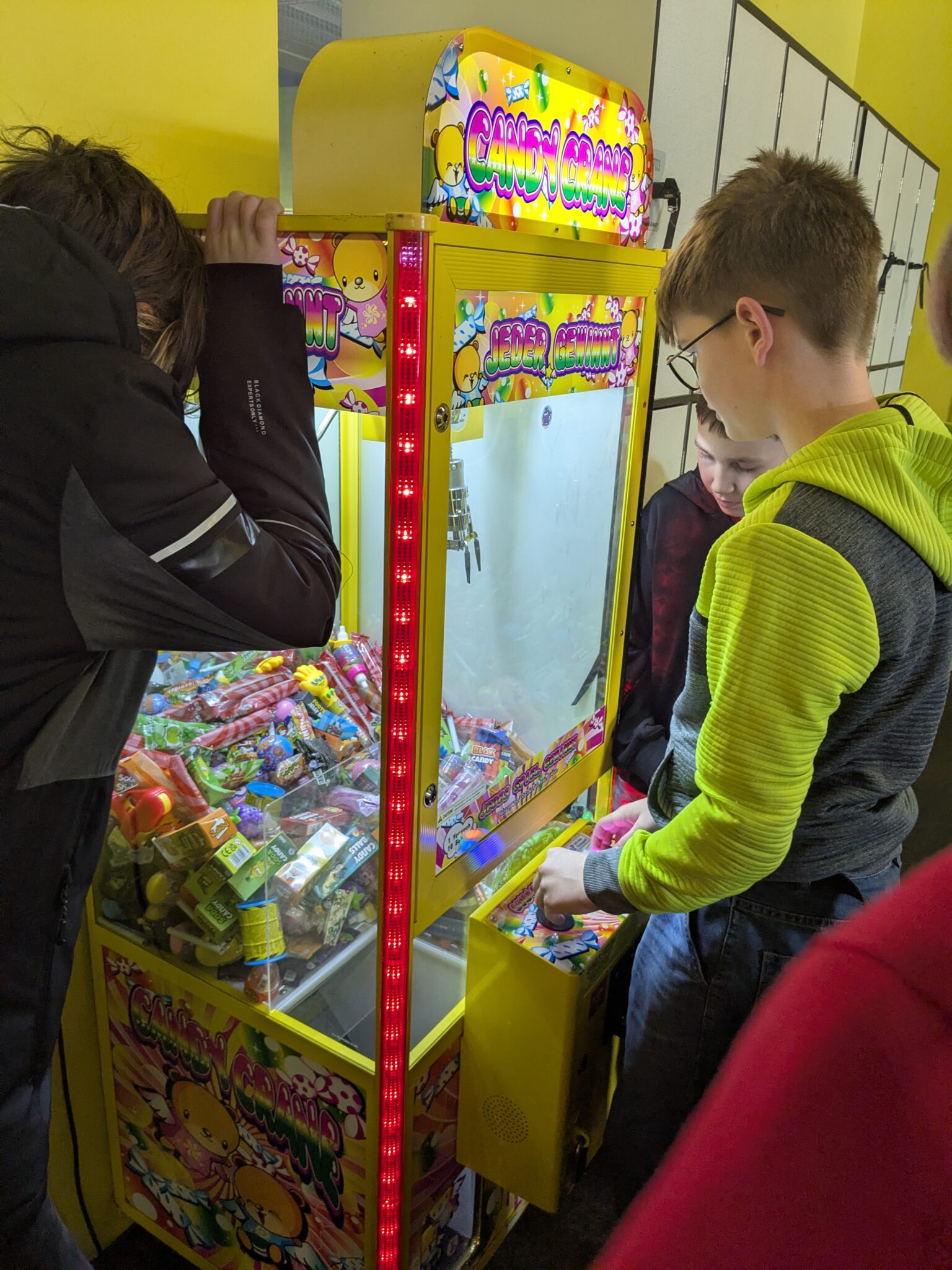 Doch das Highlight wartete abseits der Fläche: Ein Greifautomat wurde zum Ziel strategischer Bemühungen erklärt und – man kann es nicht anders sagen – fachmännisch geplündert. Mit Taschen voller Süßigkeiten und bester Laune traten wir den Rückweg an.