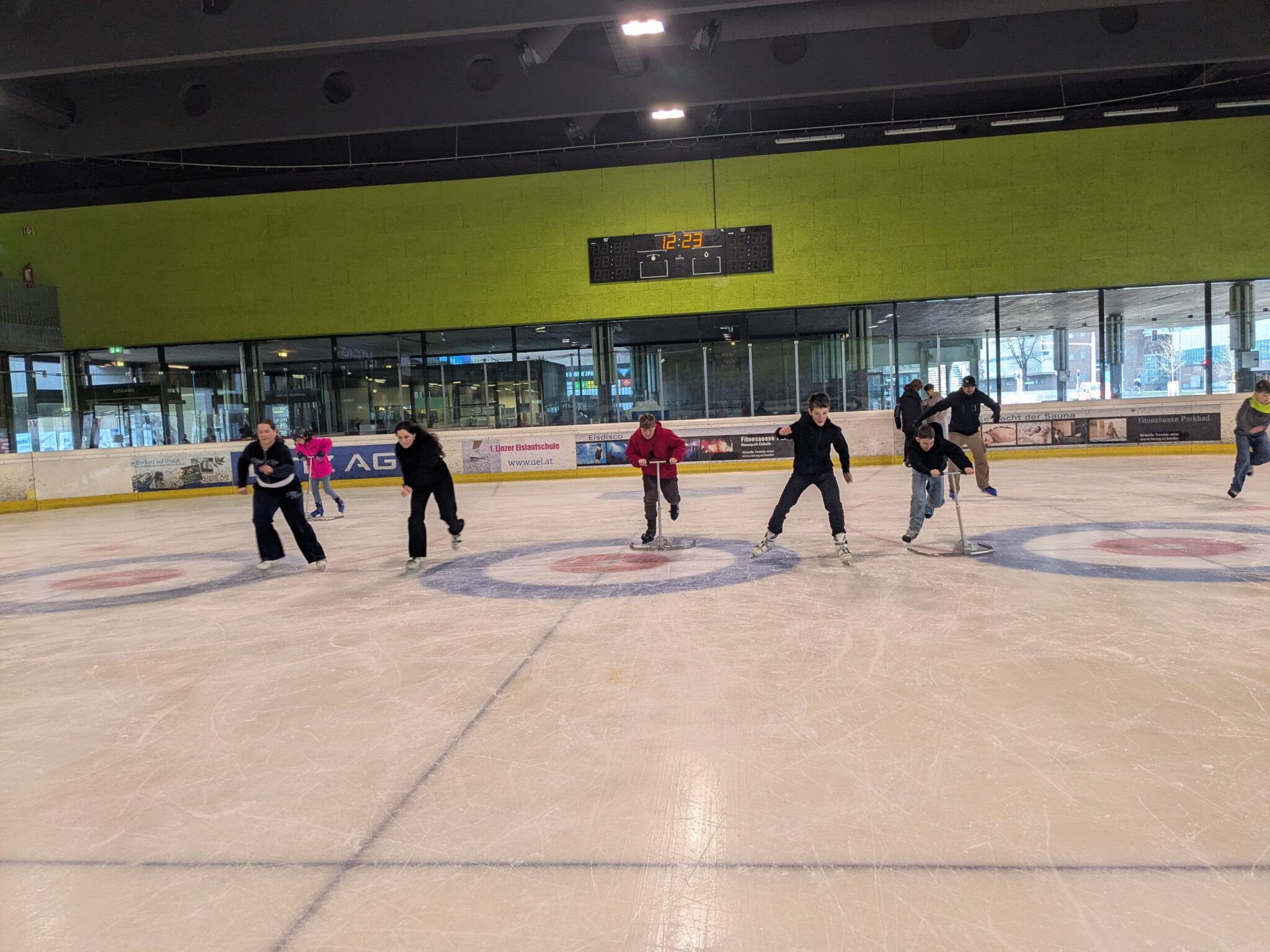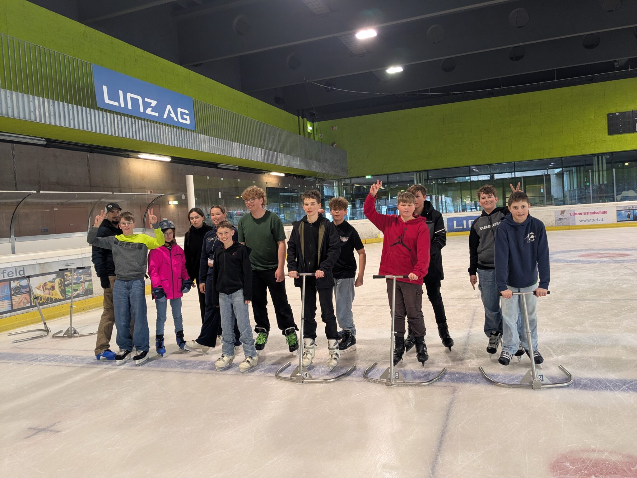 Ein Vormittag voller Speed und Spaß: Kürzlich tauschten wir das Klassenzimmer gegen die Eislaufhalle im Linzer Parkbad. Die Motivation war riesig, und kaum waren die Schlittschuhe geschnürt, gab es auf dem Eis kein Halten mehr.