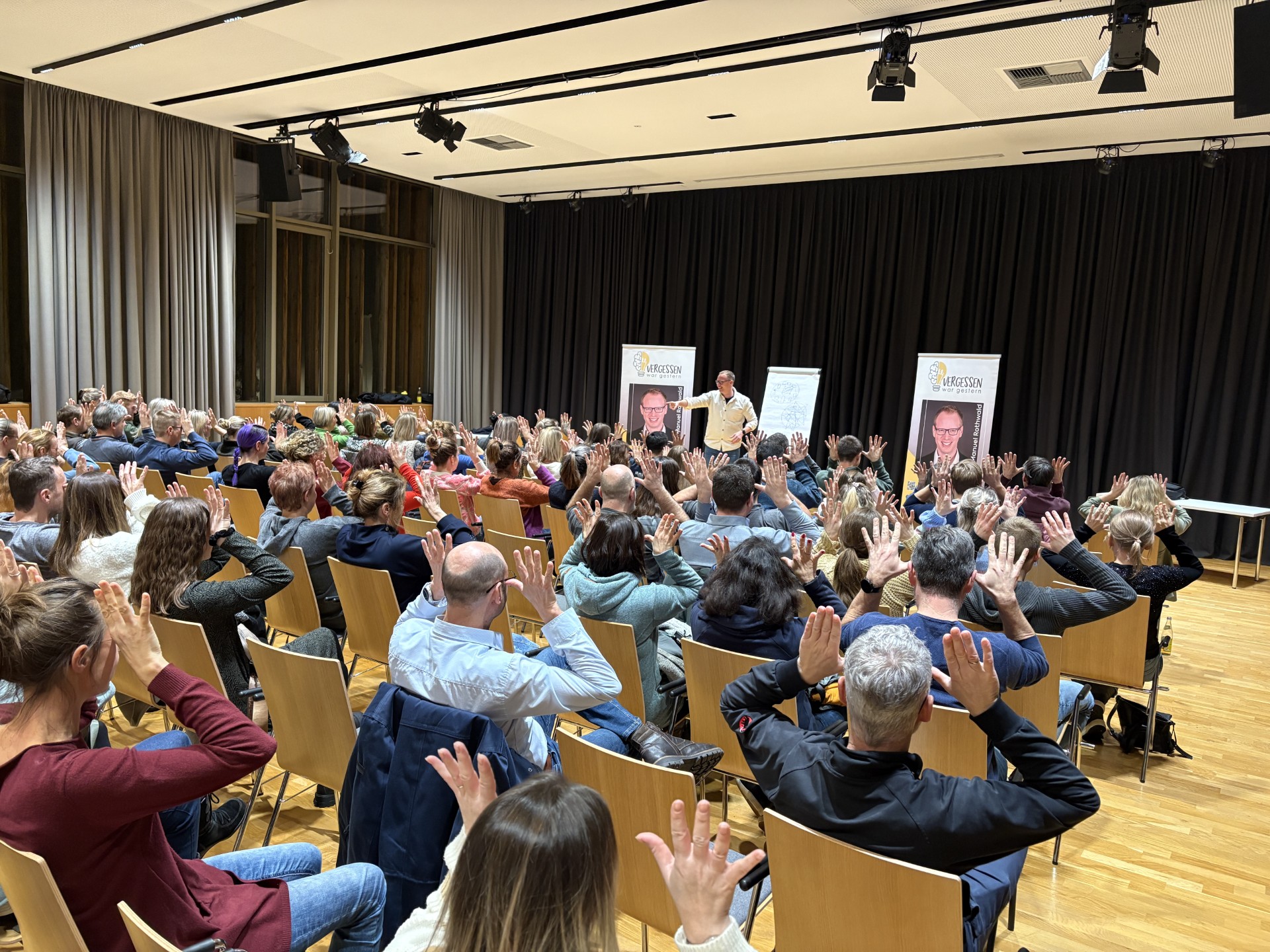 Den krönenden Abschluss bildete ein Elternabend, bei dem rund 100 interessierte Eltern einen kurzweiligen und informativen Vortrag erlebten. Manuel zeigte auf, wie Eltern ihre Kinder beim Lernen unterstützen können – mit alltagsnahen Tricks und einem tieferen Verständnis für gehirngerechtes Lernen.