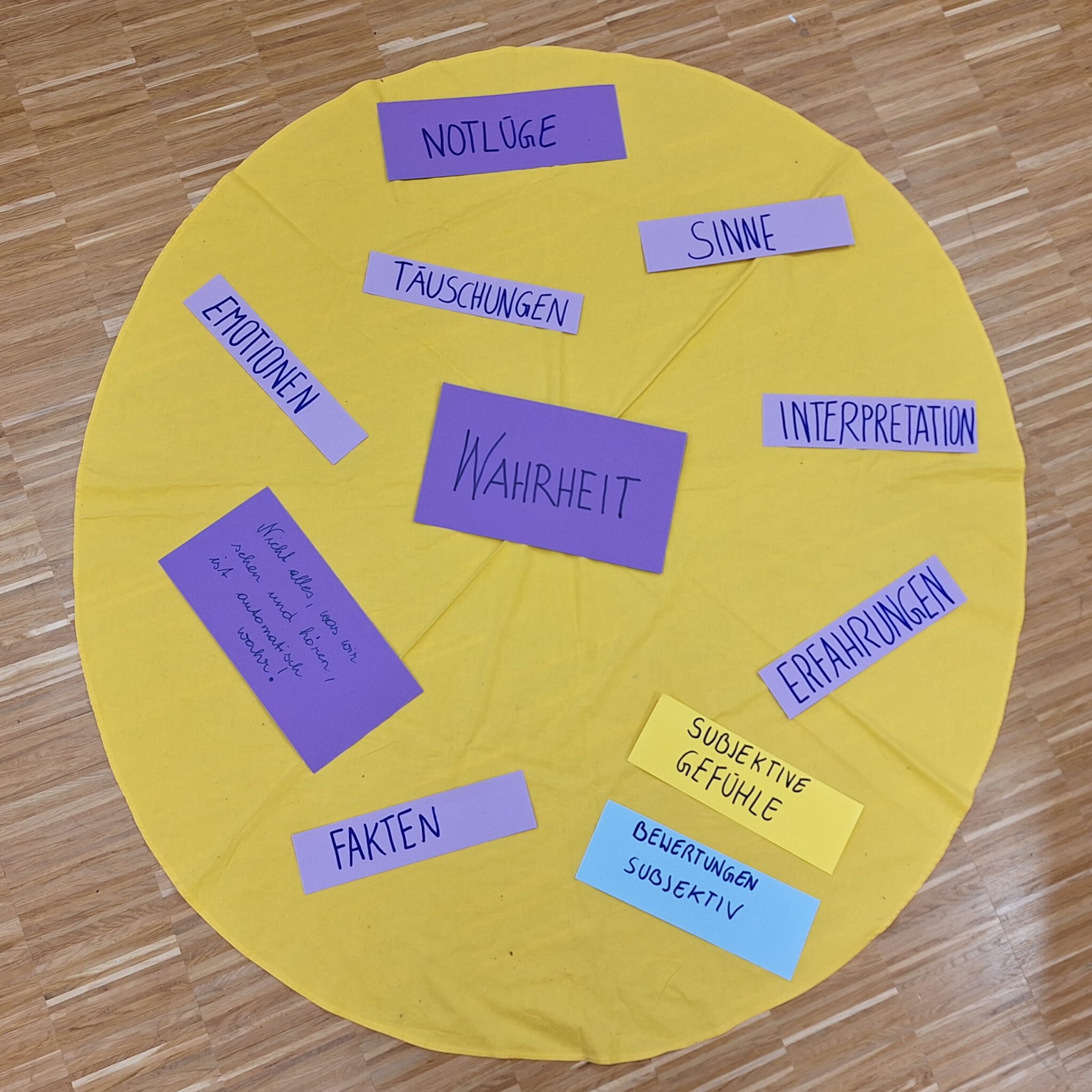 In der 6. und 7. Schulstufe machten wir uns Gedanken, was wir meinen, wenn wir über die Wahrheit reden. Wir überlegten, ob Menschen sich irren können, ohne zu lügen. Dazu machten wir einen kleinen Selbstversuch.